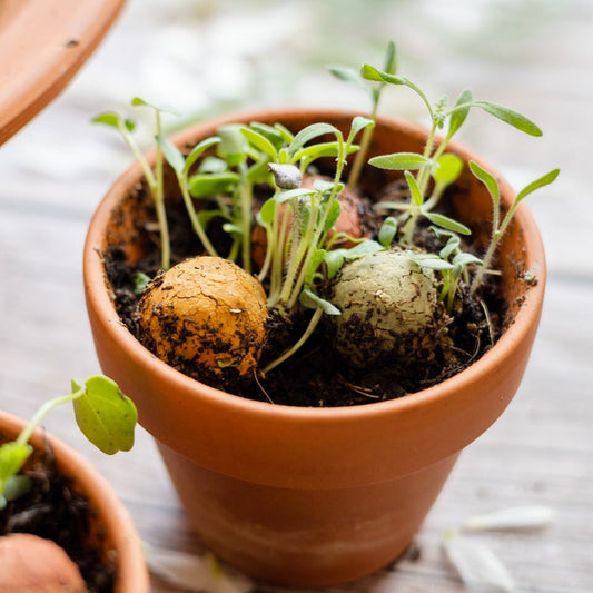 Blossombs zijn biologische gecertificeerd en gemaakt in Nederland met biologische, wilde bloemzaden en natuurlijke klei, nutriënten en kleurpigmenten. Zo geef je niet alleen iets moois, maar draag je ook bij aan meer biodiversiteit in jouw omgeving.